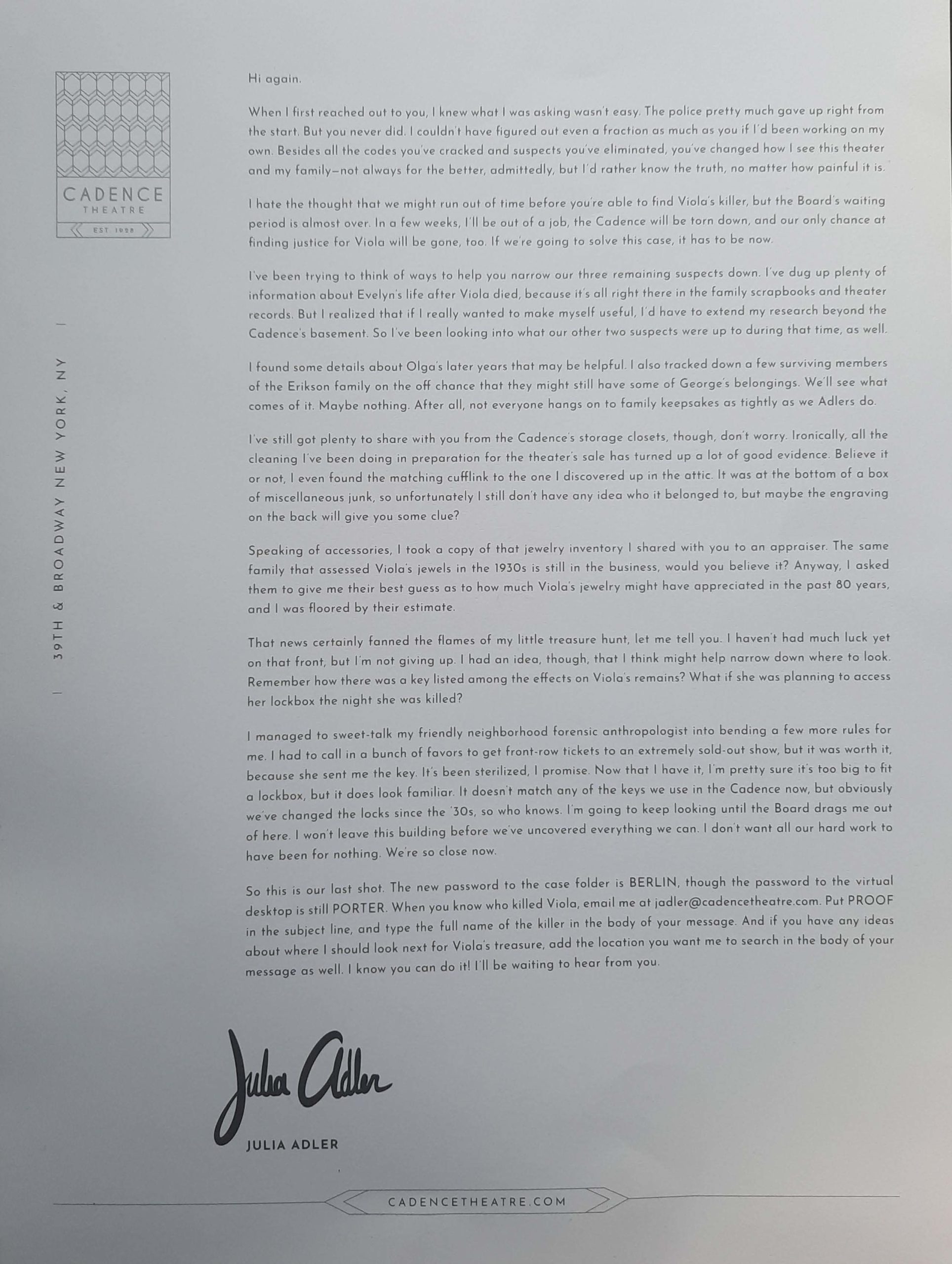 Viola’s last letter