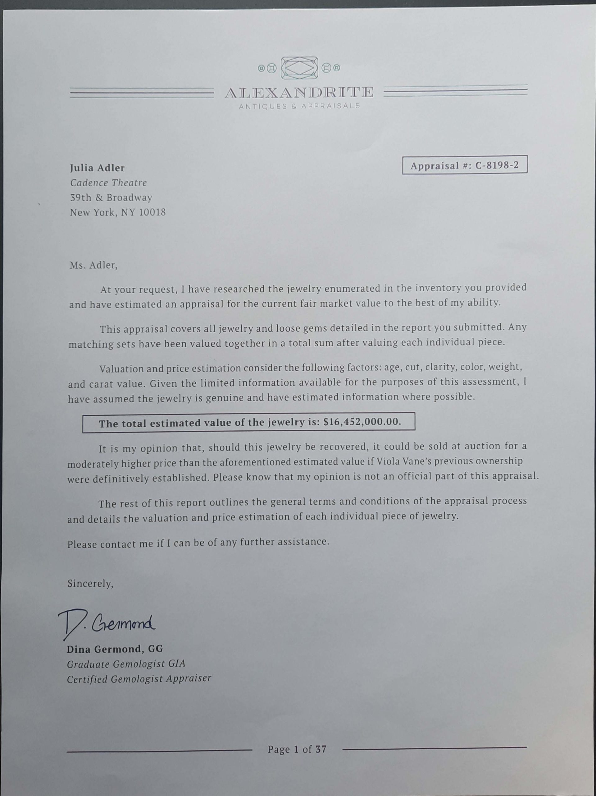 Appraisal for jewellery